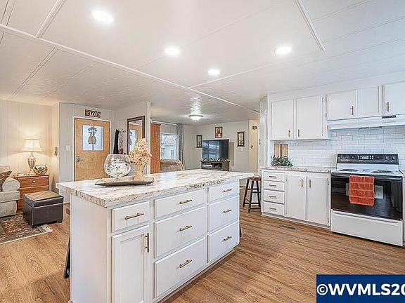 BEAUTIFULLY updated home. Open concept with gorgeous kitchen and 2nd living space. New: vinyl plank flooring paint, dishwasher, and roof. Gorgeous primary suite with new walk-in-shower. Electric furnace & heat pump. Covered patio offers a great outdoor living space. 3 sheds. Raised garden beds. This is a lovely home in a 55+ park. Water, sewer & garbage are included with space rent. Most furnishings are available for purchase. To learn more about Royal Mobile Estates visit: https://royalmobileipgliving.com/