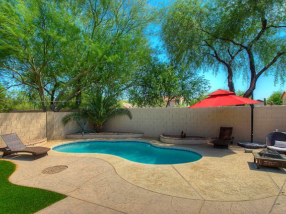 Immaculate family home in the popular Desert Ridge community. Open floor plan, high ceiling, Island kitchen overlooking spacious family room with fire place and beautiful backyard. 4 br & 2.5 baths. Extensive use of travertine flooring, S/S appliances, granite counter tops in kitchen and bath rooms. Owners have maintained it perfectly and recently spent over $22,000 in making additional updates which include synthetic grass in backyard, pool resurfacing, brand new HVAC system, installing built-in / portable BBQ to name a few. Beautiful easy care pebble-Tec pool. Excellent location. Quick access to 101, 51, fine dinning, shopping, golfing and numerous walking & jogging trails. Walking distance to many parks & schools and Desert Ridge Marketplace. A must see home!