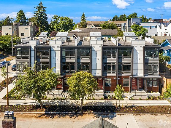 Presenting a luxury new construction townhome located in Fremont with beautiful views of the Seattle Skyline. Boasting a contemporary design with premium fixtures and finishes. Open-concept living with a gourmet kitchen, premium SS appliances & custom cabinetry. Light-filled rooms from large windows, mini-split heating, and cooling for energy efficiency. Top floor primary suite with spa-like bath. Second bedroom on lower level with own bath and bonus/flex space upon entry. Entertainer's roof deck with gorgeous views of the Seattle Skyline and Bellevue! Just a few minutes away from Green Lake, vibrant local shops, eateries, nightlife, breweries, sought-after parks & more. Designated parking included! 4-Star Built Green.
