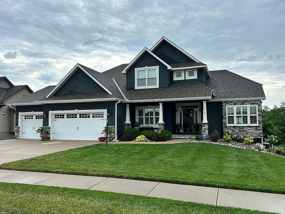 Beautiful 1.5 story, custom built home located in Greystone. Private lot surrounded by commons area, mature trees in the back, and view of the pond in the front. Large landscaping project recently completed. 16’ ceilings in the main floor living room with an abundance of natural light. The master suite and laundry are located on the main level. Large screened in deck with fireplace and tv space off of the kitchen. Custom kitchen countertops with cabinets to the ceiling. Formal dining room with windows looking out to the pond. On the second floor you will find three bedrooms and two baths with a bonus room above the garage. Finished basement with fifth bedroom and full bath. Basement walks out to large concrete patio. Call 816-390-4068 with questions and to schedule an appointment.