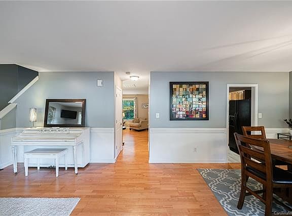 Downtown Waxhaw awaits! Charming 4 bedroom home close to shops and dining in downtown Waxhaw! Starting from the rocking chair front porch, you are greeted inside to the dining area & living room, both with chair rail molding. Through the hallway is the open kitchen, breakfast area & family room with gas fireplace. Door from breakfast area leads to the back deck overlooking the wooded & fully fenced backyard. Down the stairs from the deck, find the spacious patio installed in 2019. This yard feels like your own mountain retreat! Half bath & laundry room on main. Drop zone with cabinets conveniently located right off garage. 2 car garage is heated & cooled with Ptac & is currently being used as a gym. All 4 bedrooms are upstairs. Master bedroom features large walk-in closet and ceiling fan. Master bathroom with garden tub, shower & dual sink vanity. Large bonus room has a closet & can be used as the 4th bedroom or rec room. This peaceful neighborhood is a serene location to call home!