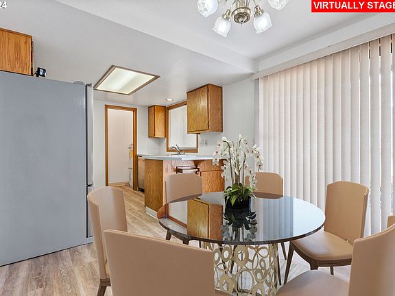 Welcome to this delightful Parkrose home, freshly renovated and ready for you to make your own. Perfect for both homeowners and savvy investors, this corner lot property features three bedrooms, two bathrooms, a kitchen, dining room, and a spacious living area. As you step inside, you'll be greeted by a bright and airy living room with vaulted ceilings and plenty of natural light. Enjoy cozy evenings by the wood-burning fireplace, perfect for those cooler nights. The entire home has been updated with new carpet, luxury vinyl plank flooring, and a fresh coat of paint, creating a clean and contemporary feel. The kitchen is a highlight with a new sink and equipped with stainless steel appliances including a built-in microwave, electric range, and a Whirlpool dishwasher. The new tile backsplash and blinds add a stylish touch, making this space both functional and inviting. The primary bedroom offers a built-in vanity with sink, along with a private shower and toilet combo. Central heating and air conditioning ensure your comfort throughout the year. This home is sold as-is and is truly move-in ready. Don't miss out - schedule a tour today to see this beautiful property for yourself!