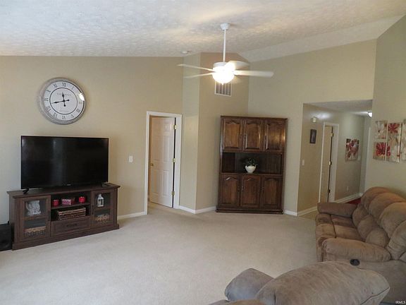 This well-maintained ranch on the northeast side of Evansville offers an open split bedroom floor plan situated on a cul-de-sac. The spacious Great Room with vaulted ceiling and a new remote powered ceiling fan light. The Eat-in Kitchen has plenty of cabinets for storage, all the kitchen applicances are included. There are sliding doors leading out to the backyard and concrete patio. The Master Bedroom features a full bathroom and a large walk-in closet. The laundary room has attached cabinets for storage and the washer and dryer are included. The attached two car garage has cabinets (attached to the wall) for extra storage. There is a yard barn (8 x 14) with a man door and a service door for easy access. The A/C unit outside condenser and A-coil are new, they were installed last summer per seller. This is a MUST SEE!