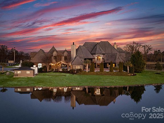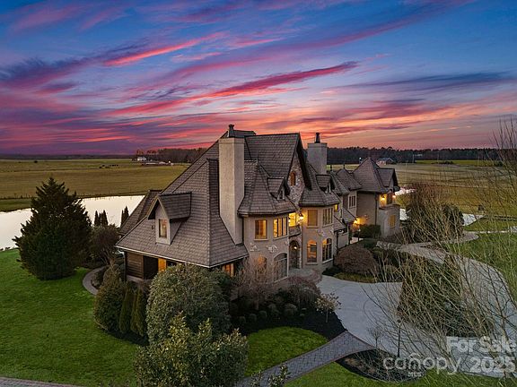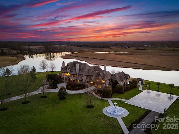 This exquisite, one-of-a-kind, European countryside estate is located on Sugar and Wine Road in Monroe, NC. This distinguished gem spanning on almost 33 acres, including a 15-acre private pond, has an endless amount of opportunities and possibilities. This estate features almost 10,000-square-foot. A French-inspired residence with five bedrooms and seven bathrooms. The property offers a waterfront Tuscan pergola for outdoor entertaining, a poolside courtyard illuminated with lights for cocktail hours, and a 4,000-square-foot concrete pad with marble accent painted floor that woudl be perfect for events. Additional amenities include lighted walkways, handicap-accessible restrooms, a fire pit, a spacious primary suite with two large walk-in closets and a beautiful custom bathroom. Upper level with three guest rooms, kitchenette, and theater room. The estate's construction boasts solid-wall design with heavy timber and stone materials, ensuring durability. This timeless estate awaits you!