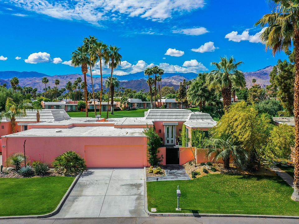 This sensational 2 bedroom / 3 bath villa is located in the very private gated community of Marrakesh Country Club. A spacious den could easily be converted into a 3rd bedroom with a private entry. Designed by John Elgin Woolf, these little pink palaces are the only authentic Hollywood Regency villas outside the Los Angeles area. With great views of the private18 hole golf course and mountains to the south and east, you are only steps away from one of fourteen community pools and spas and off street guest parking. .The home has many upgrades including a recently added large retractable awning and misters over the rear, south facing patio. The Marrakesh Country Club house is currently undergoing remodeling . It features both fine and casual dining with extraordinary mountain views , a modern fitness center, a fully staffed golf pro shop and much more. Featured in the New York Times, Palm Springs Life, and Luxe Interiors + Design magazine, this is your chance to be part of the Marrakesh lifestyle. Call today for a showing.