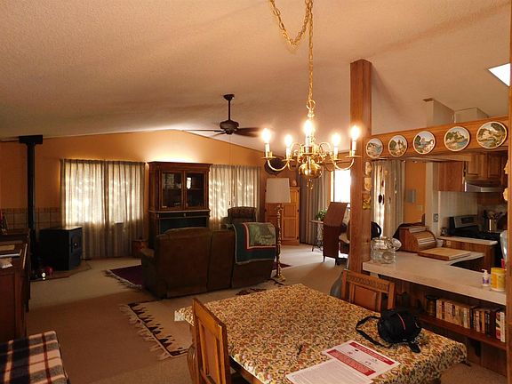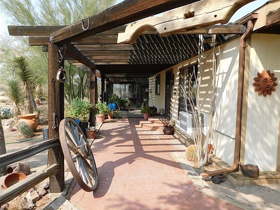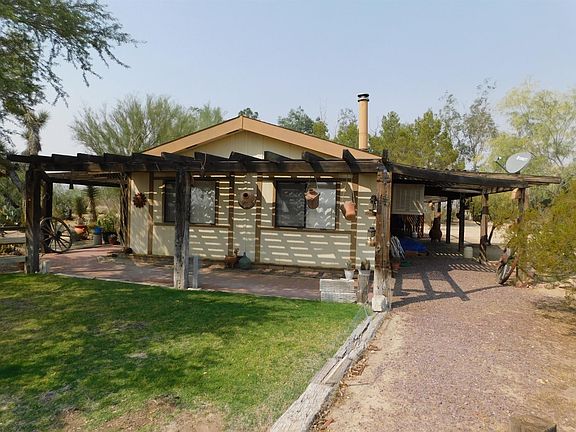 This home is truly a desert oasis. Set on 9.7 acres, with 5 acres fully fenced, you will have room to roam. This wonderful home is built as an open concept with high ceilings and the main living, dining and kitchen areas all open with no walls in between. There are 2 large bedrooms, 2 full baths, and approx. 1344 SF of living space, plus atrium area in back. The home also features a new evaporative cooler, and a new underground gas line. With the addition of a water softener and whole house water filter you'll enjoy great drinking water and nice soft water for your showers. Wonderful pellet stove in the living room brings character to the space and efficiently keeps the house toasty warm in the winter. Great kitchens has lots of cabinets and counter space. Outside is nicely kept with several large trees and an underground automatic water system. Plus full RV hook ups and 3-car carport. There are so many amenities with this great home. Make an appointment to come see it today!