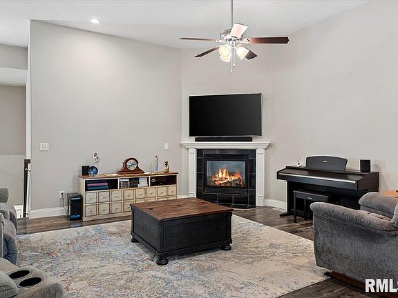 Located in the desirable Oak Park subdivision & surrounded by beautifully landscaped homes and a picturesque setting, this stunning attached ranch offers over 2,500 sq. ft. of thoughtfully designed living space. Built with quality in mind in 2018, it features an open floor plan, vaulted ceilings, a gas log fireplace and Andersen windows and doors throughout. The ultra modern kitchen features bright white cabinetry, granite countertops and a chic backsplash that set the scene upon entry. The practical layout, spacious island and secondary breakfast bar make it the perfect spot for both cooking and entertaining. You'll love the primary suite with it's elegant trey ceiling & large windows, plus a fabulous full bath with true dual vanity & luxurious walk-in shower. The main floor laundry room doubles as mudroom entry with a drop sink and extra storage adding even more convenience. Downstairs, the partially finished basement expands the living space with a huge family room, a 4th bedroom and the 3rd full bath, plus even more storage or space to finish if desired. Outside, enjoy the fully fenced backyard with a huge wraparound composite deck—ideal for relaxing or hosting friends. Stylish, spacious, move-in ready and perfectly located; this home has it all!