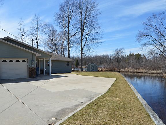 One of the most unique properties on the lake. 227 ft of Muskegon River frontage connecting to Michigan's biggest inland lake- Houghton Lake. Perfect navigable water and views that are incredible on this end of penninsula that is truly breathtaking. Remodeled and upgraded in 2007 this beauty is just like new! Open/ kitchen/living area with open porch with all glass facing this woods and water. Large Master suite with private bath, 2 other large bedrooms with another full bathroom, large ulitily/ mud room. Over sized garge with workshop and bar. This place is the perfect up north retreat