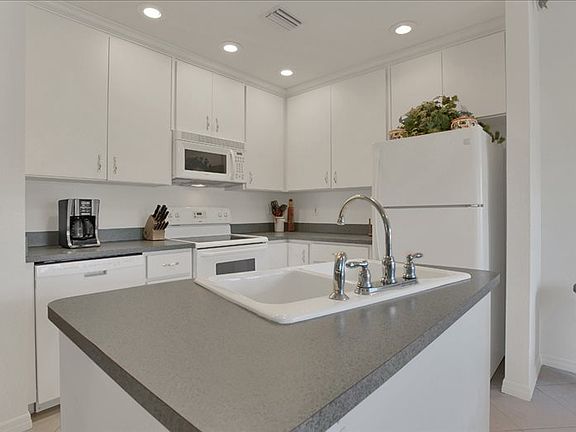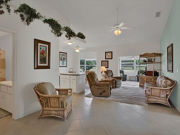 Move-in ready. This 2 bedroom 2 bath offers an open floor plan.Large living room features include ceramic tile floors,vaulted ceilings, and the most beautiful views of the golf course. Corner kitchen with plenty of counters and newer appliances. Bedrooms are spacious with private baths. Lots of storage with both a garage and golf cart garage. The best feature is a 11x 25 enclosed lanai with picture perfect views of the sunrise.Don't let this beauty get away. No condo fees! Sun N Lake fee of 675.00 per year. Community pool is just a golf cart ride away.