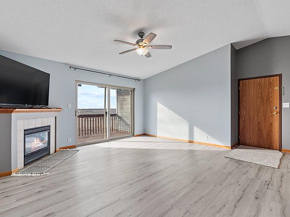 This great two-bedroom, one-bath home offers carefree condo living! Step inside to be greeted by vaulted ceilings and a bright and spacious living room, which showcases a corner fireplace and sliding glass doors to your own private balcony. Follow the living room into the kitchen, featuring ample cabinetry and laminate wood flooring. Also on the main floor, you will find two spacious bedrooms, a full bathroom and a laundry closet. Outside amenities include a detached, one-stall garage, and a secure building. Conveniently located with great spaces make this offering a must see! Don't wait on this one! Schedule your tour today!