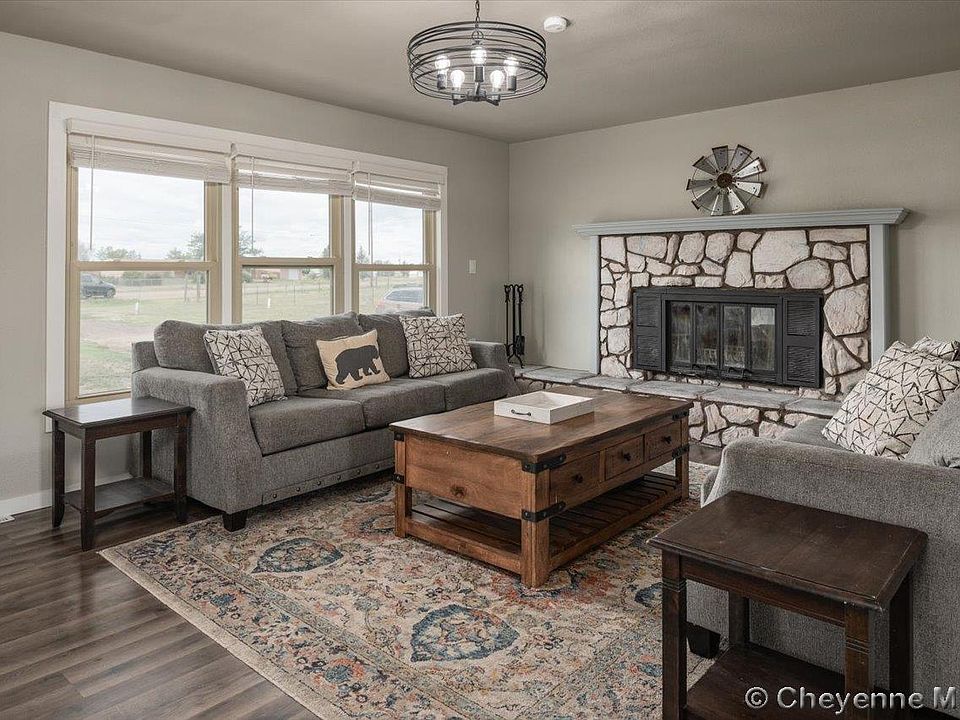 Enjoy county living close to town in this remodeled home! The kitchen has new cabinets, quartz counters & breakfast bar. Living room is bright & open with a wood fireplace.The new master suite has a large walk-in closet, master bath, barn doors & accent wall. Basement has been recently finished to include a large family room, 2 extra bedrooms & space for an office. 3rd bathroom is ready to be finished. The 2.21 acre property has a 1,344 sq.ft. shop and a 720 sq. ft. barn. Includes a Home warranty!