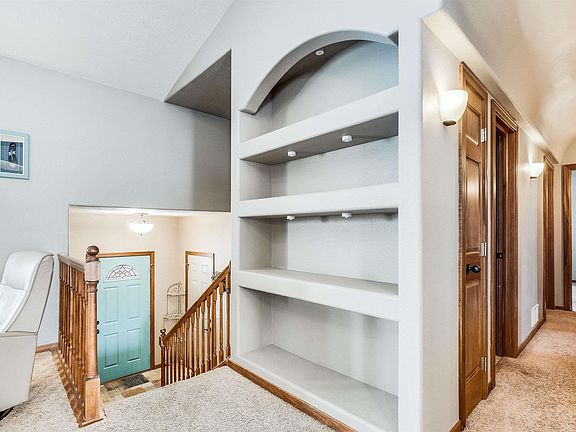 Must see 5 bed, 3 bath home in Southeast Sioux Falls. The main level is open and bright with vaulted ceilings and arched entries. Kitchen hosts white cabinetry, island and granite counter tops and is conveniently connected to the dining room with slider to deck and fenced yard. Oversized primary suite with private bath, walk in closet and tray ceiling. Lower level has much to offer from the cozy family room with gas fireplace and built-in shelving to the additional 3 bedrooms and 1 full bath. Additional features include an oversized three stall, main floor laundry, walk in closets, built-ins and much more!