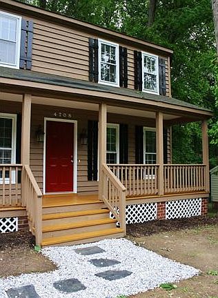 WOW! New home look without the new home price! The Full Front Porch and lovely entrance foyer accented with decorative handrails and wood treads will welcome you home. NEW kitchenOak Cabinets, Counter tops/Sink/Back splash, Appliances (fridge conveys), Laminate Wood Floor; NEW bathroomsVanities/Tub/Shower/Vinyl Floor/Fixtures; NEW carpet upstairs/family room/dining room; NEW paint inside and out; FRESHLY sealed decking; NEW Hot Water Heater; Large family room with fireplace and sliding glass doors to rear deck. Convenient half-bath and laundry adjacent to kitchen with separate side entrance from driveway. Upstairs Master Bedroom with private bath; Two additional bedrooms; This superbly renovated home will provide many years of enjoyment to its new owner.