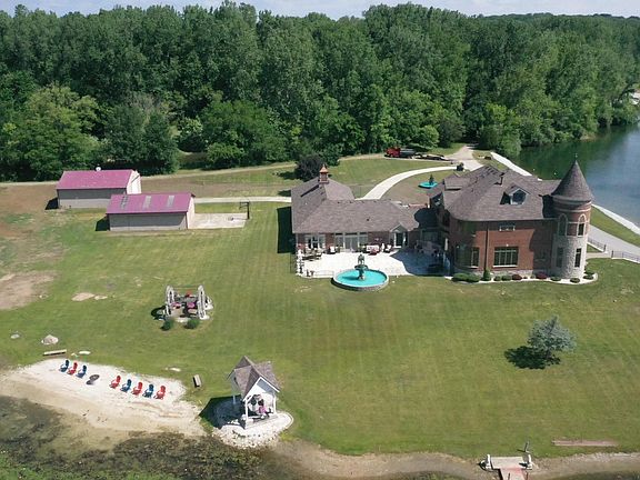MOTIVATED SELLER! Situated on 165 acres of beautiful lakes & woodlands. This spectacular 4.6 acre estate defies comparison throughout the Midwest. The castle-like mansion is surrounded by 2 lakes with unobstructed views of water from every angle. Very strong architectural detail containing a newly finished 5 1/2 year no budget design renovation & add-on with acquired handpicked elements that were incorporated both inside & out. Pictures cannot encapsulate the magnificence, craftsmanship, & detail. From 4,000 pound granite lions, huge bronze fountains, superb architectural beauty, spectacular doors both exterior & interior, an almost 1,000 sq ft dream kitchen, fireplaces throughout with exquisite custom unmatched detailed mantels, stunning handpicked chandeliers, very high end built-ins, breath taking ceilings & walls created by master craftsmen & renowned Florida artisan, very large 4 plus car garage, two out buildings, story book master suite, jaw dropping bathrooms throughout & marble floor medallions to embellish the beautiful flooring (many other fine details that go on & on). This once in a lifetime opportunity cannot be duplicated & is unmatched for miles & miles to come. This is a wonderful setting to raise a family.