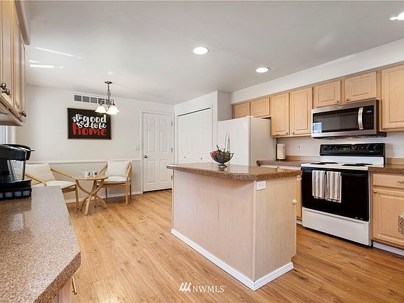 Light filled townhome with soaring vaulted ceilings, large open kitchen including coffee bar, pantry and eat-in space. Corner unit with natural light, privacy and low maintenance. Floors have been upgraded on main floor, spacious dining room and living room w/gas fireplace. Added bonus flex room upstairs with potential for office/craft, gameroom or guest room. A true master bedroom with double doors, 5-piece master bath including soaker tub and huge walk-in closet. Laundry conveniently located upstairs. Incredible mature raised garden beds in private fully fenced backyard. Parking in attached two car garage, driveway and tree lined street. Mins to the Landing, YMCA and schools. A must see! Welcome home.