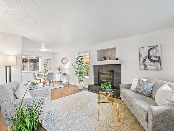 Discover the epitome of timeless living in this updated 3 bedroom 2 1/2 bath home nestled on a tranquil flag lot. The exterior of this home features newer Hardie Plank siding and boasts 1456 square feet of perfectly crafted space that effortlessly melds traditional charm with modern updates. The space invites relaxation with it's carefully designed flow, adorned with wood laminate flooring (installed in the spring of 2022) that exudes a sense of warmth and durability. Slide open the door to the deck, beckoning the outdoors in, and experience the harmonious transition between indoor and outdoor living. Enjoy barbequing on the covered deck and enjoy the shade of the trees in the yard. The floor plan includes a living room with gas fireplace and adjoining family room for those large get togethers with family and friends. Stainless steel appliances, gas range and tile counter tops in the kitchen, pantry & nook. All appliances are included. Central air conditioning to keep you cool and comfortable on those hot summer days & nights. [Home Energy Score = 7. HES Report at https://rpt.greenbuildingregistry.com/hes/OR10220802]