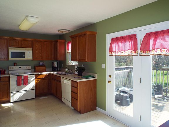Charming rancher with relaxing country views surrounding! Sits on .75 acres, lovely views of rolling hills and mature trees but nice level lot. Open family room with cathedral ceiling and nice laminate flooring. Sunny eat in kitchen with french doors to deck. All kitchen appliances remain including fridge and stackable washer/dryer (as is condition). Master BR with private bath. Split bedroom plan with 2nd full bath. Brand new HVAC, newer roof! Side entry2 car garage. Dog run area in back (dog friendly). Covered front porch, back deck - to enjoy views! See today and buy today!