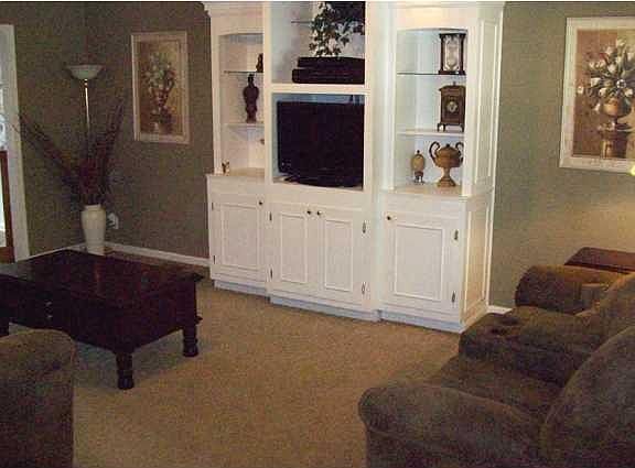 What an unbelievable house and yard in Oakhurst! There is a large covered front porch that greets you when you arrive home. Then you walk into a vaulted great room with a beautiful built in entertainment center. This home features an extra large kitchen and dining area. The fantastic kitchen features lots of countertop and cabinets. There is a smooth cook top range, dishwasher, microwave and refrigerator. The dining area has French doors that lead to a large deck. There is a large first floor bedroom with a full bathroom. The laundry is also on the first floor. The second floor master bedroom is large with 2 walk-in closets. There is a door from this bedroom to the hall bathroom. The 3rd bedroom also has a large walk-in closet. Family room has a built-in entertainment center. There is a large eat-in kitchen with a breakfast bar. The first floor bedroom could be used as a home office or bedroom. There is a laundry room adjacent to the kitchen and garage. The primary suite bedroom has two full walk-in closets and access to storage in the attic. There is a large deck on the rear of the home. This neighborhood is conveniently located near Westport road and Gene Snyder Freeway, just minutes from great shopping, dining and interstates. Rent or rent with option to buy. 1or 2 yr lease