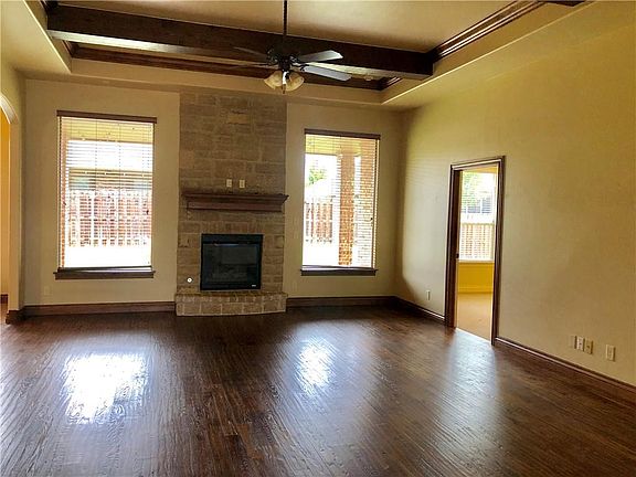 Cute home on a large corner lot with side load garage in Edmond’s Belmont Farms. Nice-sized one level plan in area of larger houses. Wood flooring in entry and living room. Split floor plan with master suite on one side of home and two spare rooms with a jack-and-Jill bath between. Powder bath for guests; flex room off living, perfect for study or game room. Newer paint and carpet - separate appliances and granite counters. Community pool, playground, walking trails and ponds.