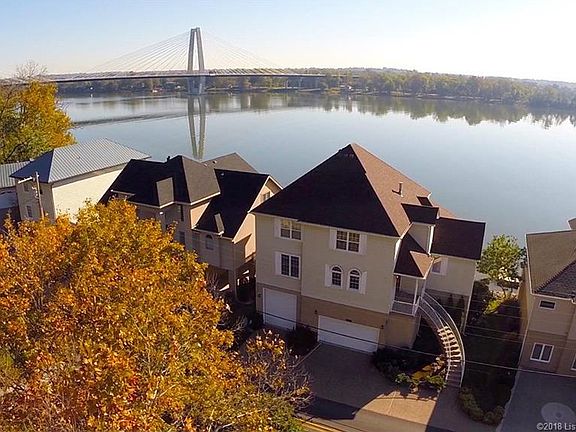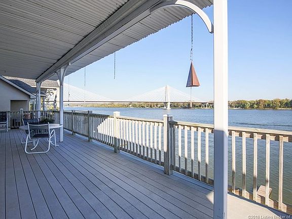 RIVER FRONT HOME WITH PRIVATE DOCK. Come take a look at this amazing riverfront property located in Jeffersonville, Indiana. This home offers BREATHTAKING VIEWS of the river from almost every room in the house. The open living room, dining room, and kitchen space are the showcase piece of this property. Huge sliding glass doors that open your home to the outdoors and a 2nd story deck that's perfect for morning sunrise sessions or evening entertaining. Two upstairs bedrooms face the river and have private access to a 3rd story deck and your own personal view of the river life. The upstairs family room has a built in bar and an unfinished room that can be used as a craft room, game room, office space, or simply extra storage room. A built in hot tub room looks out over the river for the ultimate in entertaining and relaxation. The lower level offers garage space for up to 6 cars and includes a bay garage door perfect for storing a boat, RV, or other toys. A custom elevator is added to shuttle you to all three levels of this amazing home. This is a rare opportunity to own a home on the riverfront with a stunning view of the new East End Bridge. With boat dock access to the river and quick and easy access to the new bridge, this home is perfect for homeowners who frequent both sides of the river. Call to schedule your private showing today. VIRTUAL TOUR VIDEO available upon request. *This property includes partial ownership of lot and pole barn across the street.