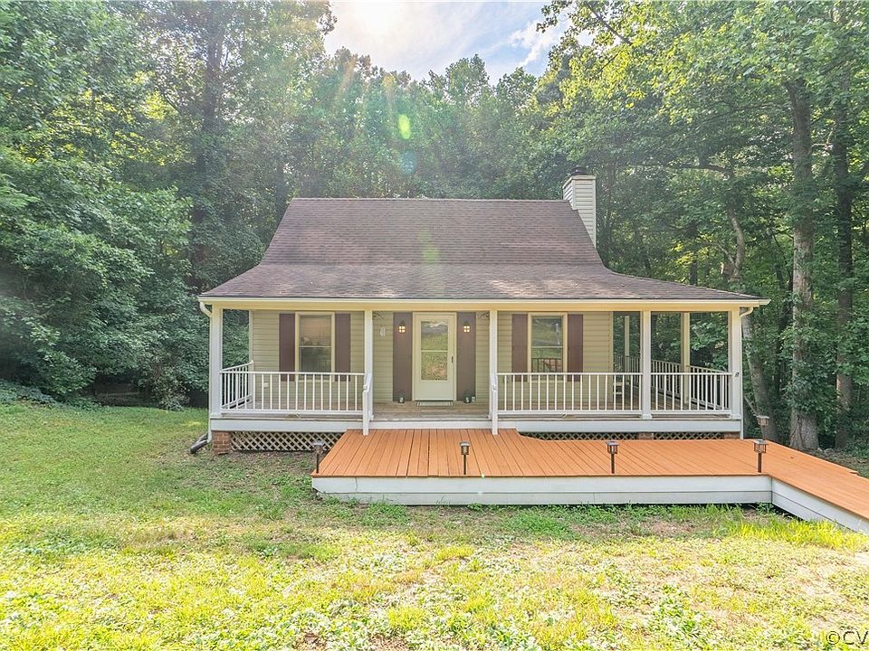 Welcome home to 4708 Valencia Place! This 3 bed 2 full bath Cape sits on a private wooded lot that is over a half acre and on a quiet cul-de-sac. Inside, the kitchen has been fully updated with granite countertops and stainless steel appliances. As you enter the home, you are greeted by the open living room with vaulted ceiling and beautiful open wooden staircase which leads to a loft area that overlooks the room and is perfect for a home office/flex space. Rounding out the main level is a bedroom with generous sized walk-in closet, full bath, and a morning room that connects to the wrap around porch. The exposed beams throughout the main level add character and charm! Downstairs has the large Primary bedroom with updated ensuite bathroom and large walk-in closet. Also on the lower lever is the 3rd bedroom which is being used as a home theatre that is perfect for entertaining and watching the game, movie, or gaming. The laundry room is on the lower level as well. As you step outside you will appreciate the privacy and nature. This is a charming home with space to be comfortable; schedule your showing today!