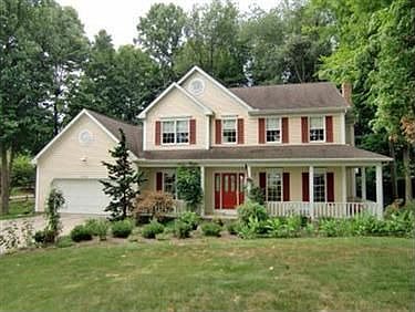 Awesome treed setting. Relax on the front porch while enjoying the peaceful setting. Enter the foyer and immediately notice the fine quality with the oak crown molding and hardwood floors. 9' ceilings are on the first floor as well as the office with built-in bookshelves and a spacious laundry room. The oversized kitchen boasts lots of cabinets, recessed lights, granite countertops and hardwood floors. The family room has a vaulted ceiling and brick fireplace. A formal living and dining room complete the first floor. The master suite has a tray ceiling, walk-in closet and glamour bath with corner garden tub. The basement is finished and has a large rec room, additional room that could be a 5th bedroom and full bath. The deck spans the width of the back of the house and overlooks the wooded backyard.
