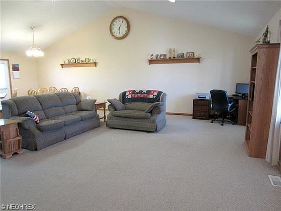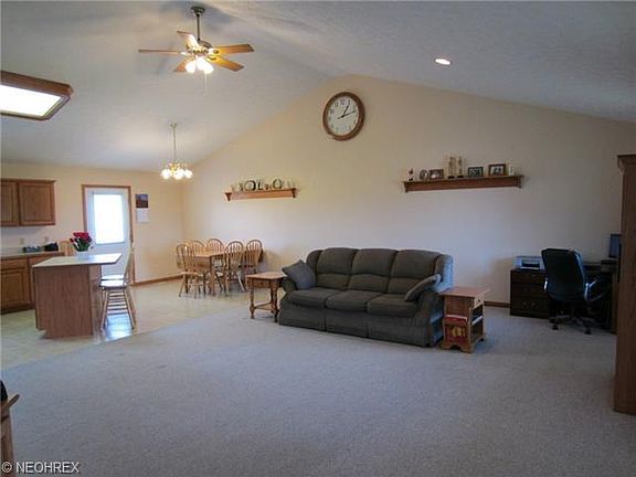 A must see! Three bedroom ranch on 2.87 acres! You'll love the Open Floor Plan of the great room, huge kitchen w/island and dining area! First floor laundry with utility tub. Bedroom #3 is a good size room with a walk-in closet and ceiling fan. Bedroom #2 has a walk-in closet and a wall of closets, and a ceiling fan. The Master bedroom is huge, also with TONS of closet space, ceiling fan, and master bath. The full basement features a sump pump to keep it dry, and a heat pump to keep the electric bills low when running the furnace & A/C! Propane heat kicks on when it gets below 30 degrees. Call today!