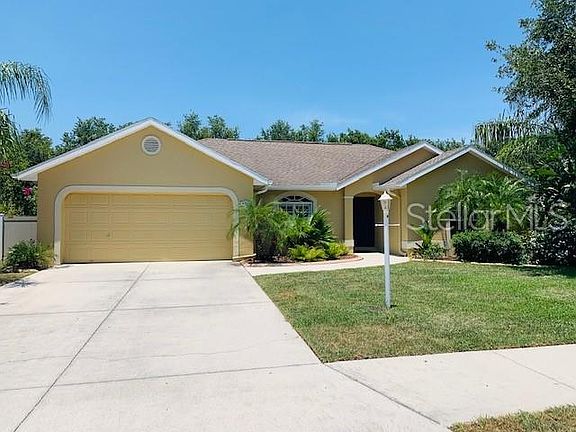 Pride in ownership shows with this fabulous 3 bedroom/2 bathroom/2 car garage home in Sugar Mill Lakes! This home has been freshly painted inside and out within the past couple years in neutral colors, has vaulted ceilings in great room and kitchen, and tile and engineered hardwood flooring throughout. Updates include stunning custom granite counters in the kitchen (2018), HVAC UV filter and surge protector installation (2018), Nest thermostat, new refaced cabinets (2017), new Samsung stainless steel appliances in kitchen (2017), custom plantation shutters on interior windows (2019), increased blown attic insulation (2018) and a wonderful newly sodded yard to enjoy along with mature landscaping that offers plenty of afternoon shade. This home lives large with an open great room concept, breakfast bar into kitchen and split floor plan perfect for families! Enjoy the fully fenced yard and evenings on your covered and screened lanai. The lanai comes complete with a doggie door for your furry friends! This property has lower property taxes and Sugar Mill Lakes offers lower HOA fees with no CDD. Amenities include a playground, tennis courts and several parks and ponds where wildlife is plentiful! The property has easy access for the commuter to all of Tampa Bay including shopping at the local outlet mall and is located just a short drive to our fabulous beaches! Come see today!