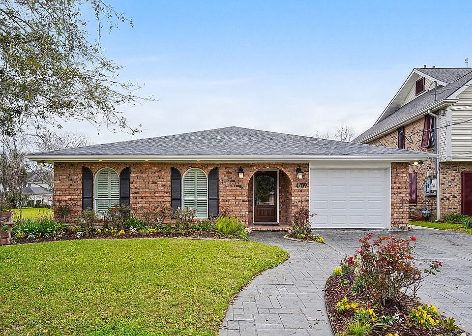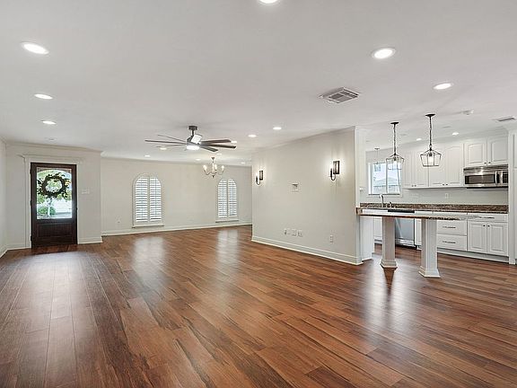 Single story ranch Spacious open-concept living area Large formal dining room Large master en suite Attached single garage Spacious laundry room Large attached utility shed Brick patios Completely landscaped Slate patterned double driveway and walkways New flooring throughout Custom wood plantation shutters New professional 6-burner dual fuel range with double oven New A/C New roof New tankless water heater Unique architectural features throughout Assumable flood insurance with lowest rates