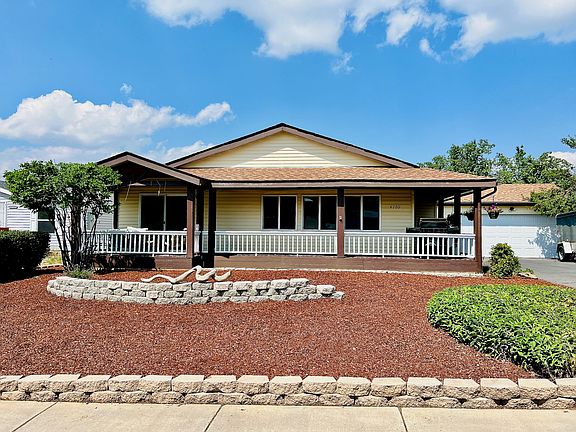 Charming Very Well Upkept triple wide home on a landscaped 0.16 acres with a nice wide driveway. Split floor plan with lots of natural light features 2084 sq.ft. of living space with 3 bedrooms and 2 bathrooms. Primary bedroom offers private bathroom, walk-in closet, and sliding door access to the wraparound porch/deck to greet your sunrise and sunset. This home boasts a spacious kitchen that opens to a family room with eating area, leading to a formal dining room, and living room. In addition, there is a separate laundry room and built-in cabinets for ample storage throughout the house. Updates include new flooring throughout the house, new refrigerator, dishwasher, microwave, and faucets. Oversized 2-car garage with plenty of shelving, has been fixed up and painted with a new garage door and motor installed. House surrounded by mature plum, almond, and pear trees. Fully fenced private backyard offers an 8x10 shed. Must See!!!