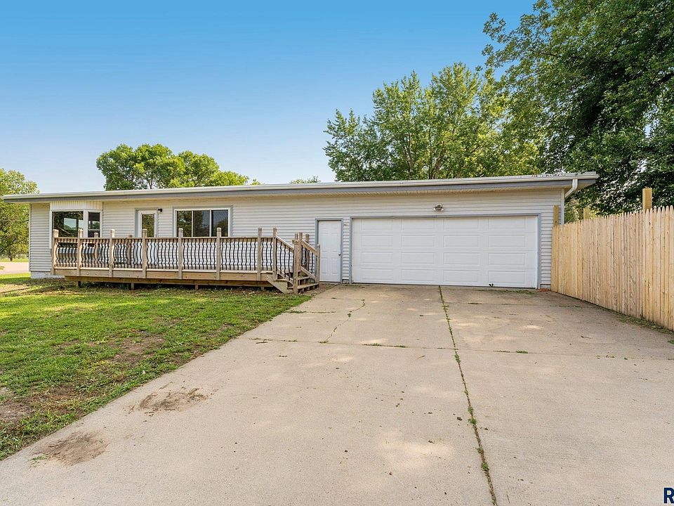 check out this ranch style home with an attached oversized garage located on quiet street. Located on a large corner lot with a new privacy fenced yard. This home offers an open floor plan with very little hallway. The garage has plenty of room to work on projects. The kitchen has a unique floor plan with oak cabinets, open staircase to the basement tile floors and a built in buffet to enjoy your knick knacks on. The living room has plenty of room, a bow window with a ledge to sit on a wall of rocks and laminate floors. No sidewalks to shovel and a large driveway to get cars off the street. The driveway is big enough to have 4 cars off the street