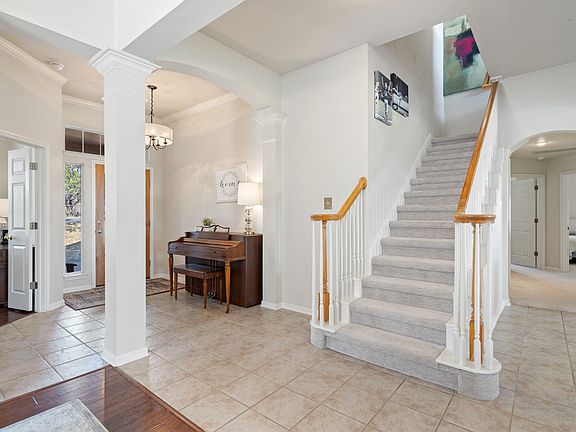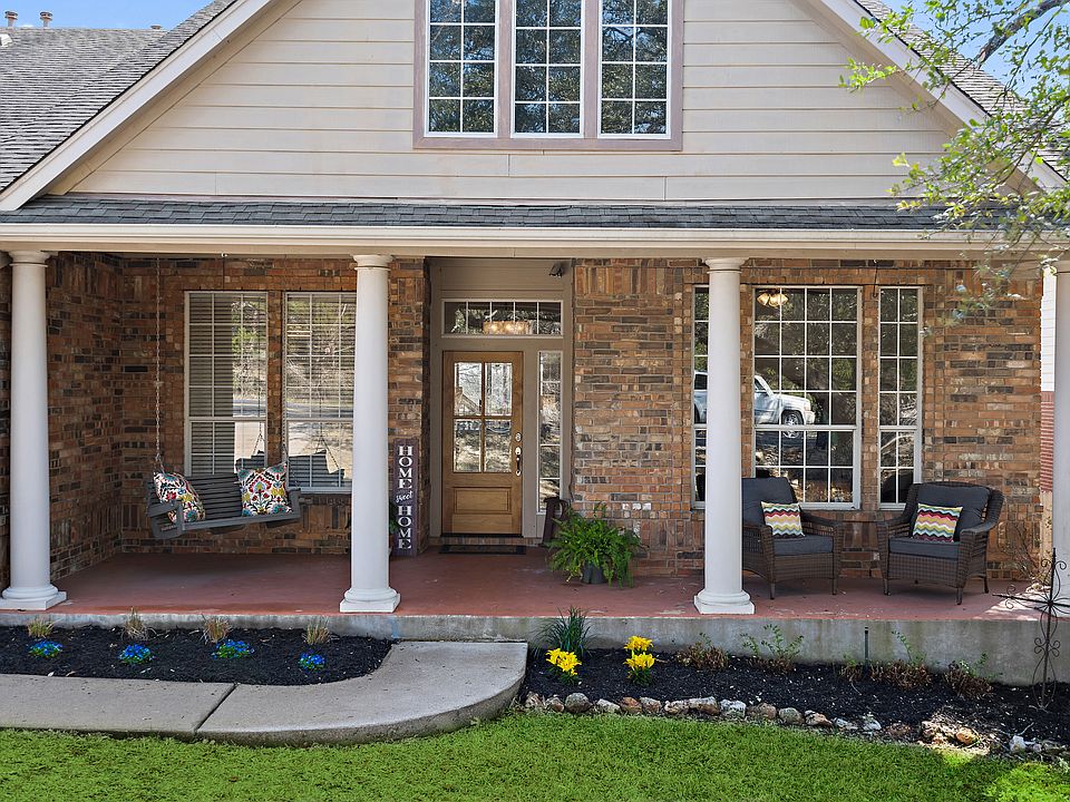 Positioned at the back of the home, the first floor primary suite provides an oasis from the other three first floor bedrooms. The large bay window gives spectacular views of the greenbelt and the large bathroom includes a spacious walk-in closet as well as substantial linen closet. Step upstairs to a large gameroom or fifth bedroom and a full bathroom.