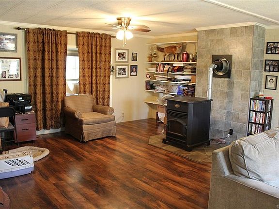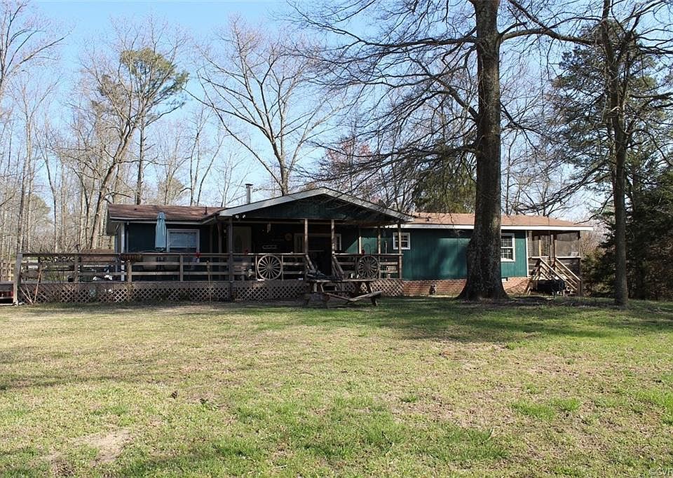 A little piece of heaven with 17.33 acres in the peaceful country! One level living ranch with open floor plan and split bedroom design. Relax on your country front porch and wrap deck overlooking the fenced pasture area and barns. Also enjoy 2 screened porches! Large great room with updated laminate floor and pellet stove to keep you warm on those cold winter nights. Kitchen has ceramic floor, refrigerator, microwave, and pantry. Great utility room with washer & dryer, new ceramic floor, cabinets, & closet. Large master bedroom on one side with laminate floor, walk-in closet and renovated master bath with new tile floor, designer tiled shower, large vanity, recessed lights, wainscoting, & linen closet. Two more bedrooms on the other side with double closets. Hall bath updated with new ceramic floor, vanity with granite counter, tub/shower. Plenty of storage, 12 x 16 shed with lean to, another 11 x 23 shed with electricity (2 rooms), plus 2 Barns (6 stalls). Don't forget the chicken coups too! Enjoy the pear, peach, & apple trees along with blueberry & blackberry bushes, concord & muscadine grapes! Deep well for house & shallow well for barn. Creek on S/W side of property!
