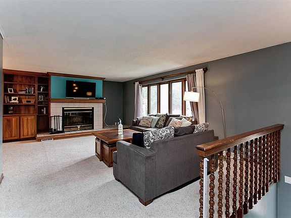 For buyers who love nature, this split-foyer is waiting just for you! Situated on a quiet cul-de-sac among the beautiful SE woods & close to the Sac & Fox Trail. Enjoy the view from your 3-seasons porch or entertain on the large deck. Play equipment stays with the home. Inside is spacious! Living room includes a wood-burning fireplace with custom shelving. Eat-in kitchen has been updated, with plenty of cupboards including a beverage center. Dining area is a great place for more formal occasions or sitting around the table to work on homework or hobbies. Master bedroom is a place for relaxation, with spa-tub & sliders to the deck. Another bedroom also includes an en-suite bath. Lower level adds to your living space with laundry, half bath, rec room & a 4th bedroom. New roof & gutters. Don't miss this great value!