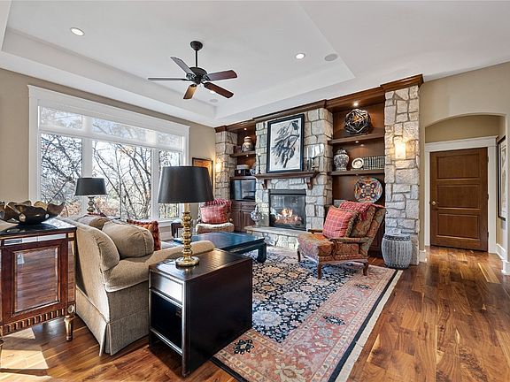 Discover your dream custom-built home in the beautiful Keystone on Lakeside community. Built in 2013 this is an exceptional 6-bedroom, 4.5 bath walk-out ranch with over 4500 SqFt of finished living space. Design, craftsmanship and attention to detail is on display in every room. Windows in the living room, dining room and primary bedroom display nature behind the home. Beautiful millwork adorns this property. Coffered ceilings in the entry, dining room, living room, primary bedroom, and home office exude custom. Walnut flooring and a limestone fireplace surround add to the ambiance of the main level. The kitchen boasts custom raised panel cabinetry, Gas Cooktop, Double Ovens, granite countertops, backsplash, and breakfast bar. Adjacent to the dining area there is a deck to BBQ, dine alfresco or simply enjoy nature. The main floor primary suite enjoys views to the rear and boasts a walk-in shower, jetted tub and a fantastic closet with an island adorned with a granite top. Craftsmanship and built-ins continue in the lower level. You will enjoy the bar, wine fridge, beverage cooler, fireplace, theater room and access to the backyard and a professionally built fire pit. Finally, 2 of the 3 garage stalls are extra deep for your hobbies or toy storage. Residents of the Keystone on Lakeside Community enjoy two private stocked ponds.