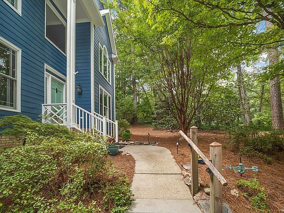 Tucked away amongst the Magnolia, Dogwood and Japanese Maple trees is this lovely 4 bedroom home enveloped in rich, mature landscape. This home is serene, quiet and has a perfect sense of privacy on a lovely culdesac in the St Andrews neighborhood of Wake Forest. Upon entering, you will notice streams of light from everywhere in the home- nature is abound indoors! Even more, the home extends its outdoor living space with 2 expansive porches; one that is fully screened leading out to a whimsical nature walk and a second entertainers deck off the kitchen and family room. This home has been well cared for and meticulously maintained; new fiber cement siding, new gutters and interior paint, updated windows throughout, and upgraded bathrooms; water heater, parking apron, garage attic, and new vapor barrier have all been added. Hardwood floors run throughout the living spaces! Open concept kitchen with gas cooktop and new electric oven opens to the living room with a cozy gas log fireplace. Three bedrooms, including the large primary with fully a fully renovated bathroom and two walk-in closets, and an additional massive bonus room/4th bedroom with a wet bar, plus a loft area make up the second floor. Off the kitchen, is the first floor bedroom with a full bathroom, walk-in closet, and its own private entrance leading out to the tranquil screened porch. The storage space in this home is massive! Don't miss over 900 sqft of unfinished walk-up attic space with spray foam insulation or the innovative garage attic with over 250 sqft of work and storage space; including a storage loft, built in cabinets, and workbench. The home is on private well and septic, with natural gas, and whole house water treatment. St. Andrews is an incredible and intimate community with only 27 homes, no city taxes, and NO HOA!