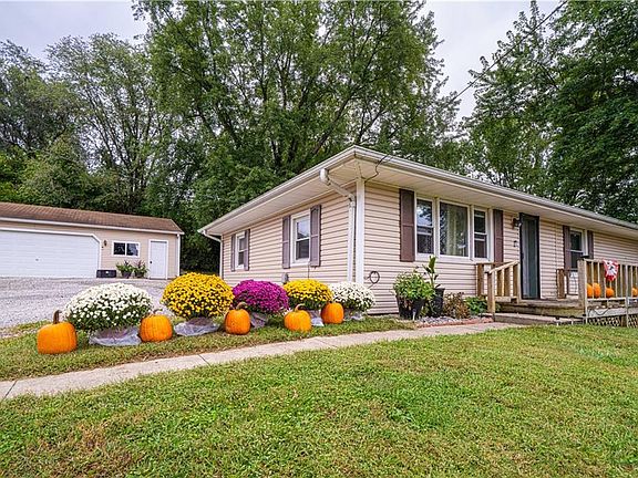 Charming 2-bedroom, 2-bath home set on a spacious .49-acre corner lot just outside the city limits. This inviting property features an eat-in kitchen and a walk-out basement with a 3rd non-conforming room—ideal for an office, guest room, or hobby space. The oversized 2-car detached garage offers ample storage or workspace. Enjoy peaceful living with plenty of space inside and out, all while staying close to town amenities.