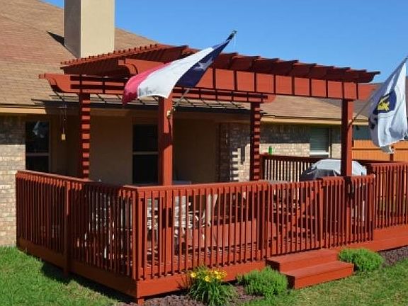 JOHN REIDER PROPERTIES- 455 E Central Tx Expwy Suite 101 (254)699-8300 - www.johnreider.com - johnreider@johnreider.com This stunning home is filled with custom touches from top to bottom All walls are finished in a soft suede with creamy white trim including the crown molding, custom panel doors and built up window frames with expanded shelf tops, creating a soft beautifully lit environment. The living, dining and kitchen area are designed in a "great room" style with nine foot ceilings , some barn vaulted, gorgeous upgraded tilt windows with 2" wood plantation blinds through-out. The space centers around the oversized, heavily mantled custom wood burning fireplace and also features soft, arched openings from each area. The large kitchen features gorgeous granite counter tops and heavy solid wood oak cabinets and was built for family and entertaining in mind, opening into the dining and living areas through an arched pass through and double sided, granite topped breakfast bar. The backsplash is custom brick which beautifully accents the granite and the oversized taupe floor tile throughout the kitchen and dining. All appliances are included and feature top of the line, stainless steel glass top range, built in microwave, dishwasher and oversized side by side refrigerator with convenient bottom freezer. In a true split floor plan the master suite is located on one side of the home, with the three minor bedrooms sharing a large full bath located on the opposite side. As pictured, the large master bedroom features an oversized recessed tray ceiling with custom ceiling fan, framed in soft accent lighting. The large en-suite five piece bath features a deep, jetted garden tub, separate custom shower with clear glass doors and built in bench, his and her vanities and a large master closet. All of the minor bedrooms are very nicely sized and each features an oversized closet. The bonus room, pictured as a playroom, features a double French door entrance and can be used as pictured, or as a computer room, office or formal living. While the entire yard is beautifully landscaped, the back yard is the star of the show, featuring an extended rear fence, allowing for maximum privacy, extended covered patio with built up custom deck and a custom cedar play set, all beautifully finished in a bold cedar, weather resistant stain. Don't miss out on the opportunity to live in this gorgeous home, on a quiet, beautifully maintained cul-de-sac.