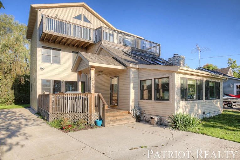 Fabulous nearly-new lake home with 5 bedrooms and 3 full baths on 181-acre all-sports Little Whitefish Lake, 30 minutes from Grand Rapids. Totally rebuilt in 2008 with over 3,000 sq. ft. of casual living space and great cottage decor. The main floor is open and large; the huge kitchen is brand new with butcher block counters, loads of cabinets; large living room; spacious dining area; full bath; laundry plus bedroom. The second floor has 3 good-sized bedrooms and full bath. On the top level is an impressive private master suite with cathedral ceilings, whirlpool tub, marble counter-tops, floor to ceiling windows overlooking the lake, and 2 decks. Sandy frontage with no seawall, clear water, great swimming, fishing, and boating. Private backyard with room for garage, per township permit. Cottage comes with dock, swim platform and paddle boat. All furniture can remain at the right price.