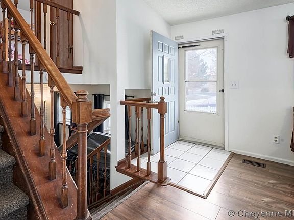 Great location just North of Dell Range Blvd. Charming white vinyl picket fence in front plus large fenced backyard with separately fenced garden space. Bright and open floorplan. Vaulted ceiling. Updated, eat in kitchen. Walk in closets in both upstairs bedrooms. Cozy fireplace in family room. Close to elementary school and shopping. Sale contingent upon seller finding suitable housing.