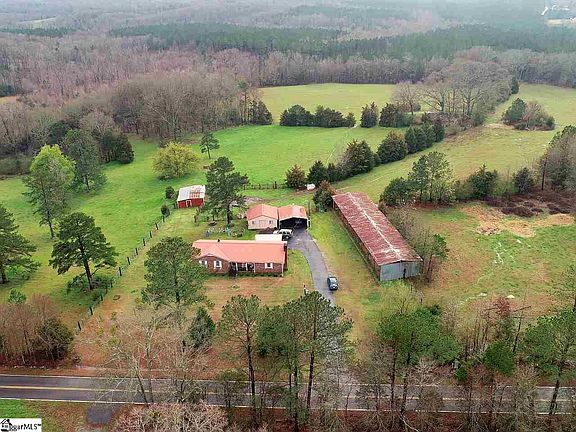 A paved driveway leads to a 3 Bedroom 2 Bath brick home covered with a metal roof and located on 25 plus acres. the acreage is fenced into 5 pastures and ready for cattle or horses. Also included there is a hay barn, shop with electricity and a loading barn located on the property. the home feature a 19x19 den, large laundry room and HVAC just a couple years old. Other updates to the home include new plumbing, hot water heater, kitchen appliances and well pump. Come see your slice of heaven located with easy access to Hwy 25 so 40 minutes to Greenville, 20 minutes to Greenwood Beautiful land and home ready for you to make it your own!!