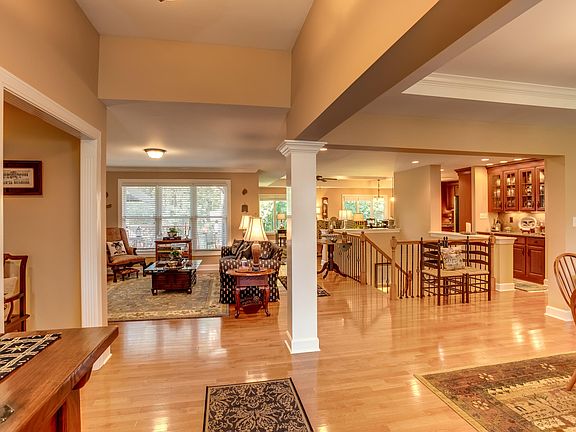 Welcome to 4709 Razor Creek Way! Located in the Estate section of The Bridges of Razor Creek, this gorgeous 5 bedroom, 3.5 bath walkout executive ranch home provides the perfect opportunity to enjoy the serenity and peace of the natural surroundings, creeks and forests that are the hallmark of this award-winning community while just minutes away from shopping, restaurants and interstates. Perfectly located on a private, beautifully landscaped and wooded lot this home offers a wonderfully peaceful, tranquil quality of life. Impeccable workmanship and high-end finishes, coupled with immaculate care and maintenance come together to create a home that is both stunning and welcoming. The Wow factor when you step through the front door is the view! Multiple windows across the back of the hom showcase breathtaking views of nature that offer new scenes with each season. The open floor plan flows seamlessly between the great room, dining area and eat-in kitchen. The screened-in porch with ceiling fan and spacious deck offer endless relaxing/entertaining options. The eat-in kitchen is designed for the serious chef with exterior vented 5-burner gas cooktop, GE Advantium oven, prep island with spacious breakfast bar and large pantry. The perfect wet bar/butler's pantry is located near the dining area for ease of buffet/beverage service. The primary bedroom suite is special with the view to the outdoors and spacious en suite bathroom and amazing walk-in closet with custom built-in shelving and drawers. Two additional bedrooms and full bath are in a separate wing insuring privacy for all. Just inside the 3 car garage, a first floor laundry room doubles as an efficient drop zone for convenient storage of personal items, backpacks and sports equipment. A convenient powder room is located near the front entrance. Thoughtfully designed for the ease of multi-generational living, the lower walkout level includes a generously sized bedroom with walk-in closet and full bath, family room with fireplace, library nook, a second bedroom currently being used as an office, workout room and full kitchen/bar area! The homeowners have thought of every detail needed for ease of use including extra large doorways and a sidewalk that winds from the front of the home to the rear walkout entrance without the encumbrance of stairs. And now the fun begins! This home has hosted large family gatherings, comfortably seated in the dining area. Parties are frequent around the fire pit and covered lower patio area and large deck. Within view of Razor Creek and ample green space, there is plenty of room for lawn games. Step back inside and watch the big game while enjoying drinks at the bar or relax in the library nook. The screened-in porch is perfect for morning coffee or a casual meal. Added features include indoor/outdoor speakers and additional outdoor lighting. The efficiency of this home has been addressed with an irrigation system and home security system. The office has been hard-wired for internet access. The sellers are also offering a 1 year home warranty. Enjoy the walk-through video and schedule your private showing today!