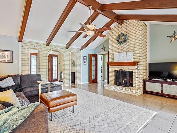 2nd Chance Opportunity Home, as prior buyer financing fell through. Move-in ready for Holidays! Oversized lot w/detached dble carport & storage w/ample green space for a pool; rear yrd access w/electric gate & remote; cathedral ceiling in spacious den w/wood beams & cozy fireplace w/gas starter; crown molding throughout. Multiple multi-purpose rooms could be used as add'l bdrms. Cypress ktchn cabinets, dble ovens & 5-burner gas cooktop; updated bathrms, sep living & dining rms. New roof, low flood ins!