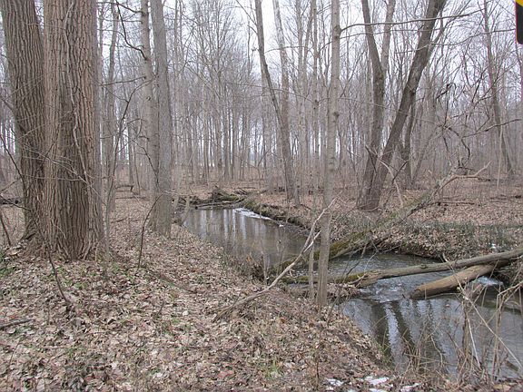 Location, location, location, where you can have it all. 2 1/2 half acres of woods, hills and frontage on Spring Creek. Could be a great homesite with nature all around.