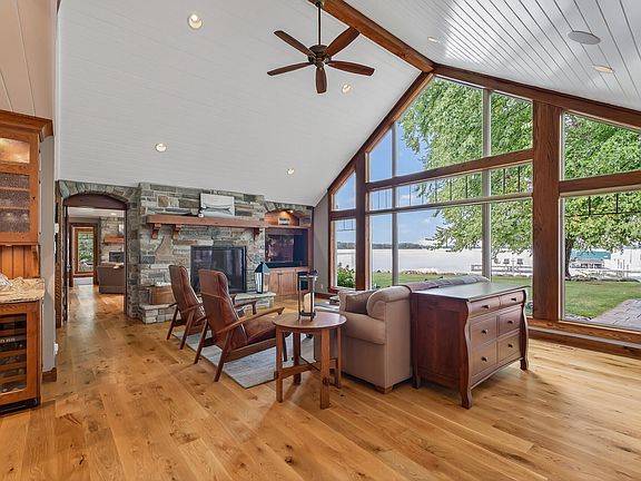 Stone-surround fireplaceStone-surround gas fireplaceLarge dockLarge center islandWalk-in pantryRustic white oak flooringBreathtaking lake views