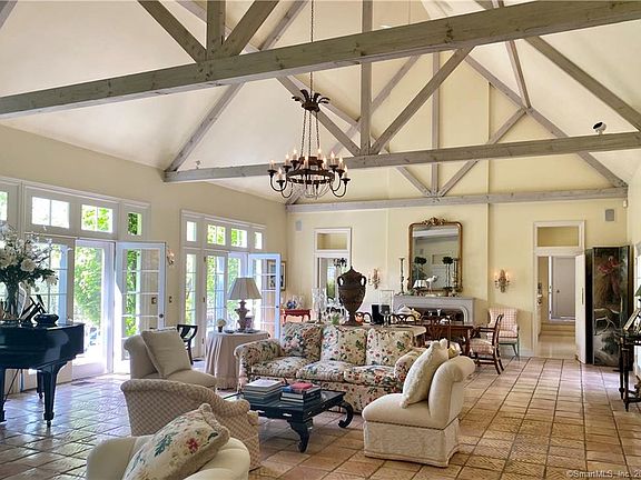 Welcome to "The Meadow" at 470 June Road bordering back country Greenwich, a charming ivy covered Tuscan style farmhouse, privately set on 8 acres of bucolic countryside. The main house boasts 5300 sq ft of one level living with charming details, 3 bedrooms, 2 1/2 baths, palatial great room and dining area with vaulted beamed ceilings and a wall of French doors that open to the back patio overlooking the rolling lawns and inground pool. The separate antique cottage dates back to 1760, and features over 2000 sq ft, 3 bedrooms, 2 baths, private back patio and separate detached garage. Just about 6 miles (15 min) to both downtown Stamford and downtown Greenwich and 45 minutes to Manhattan!