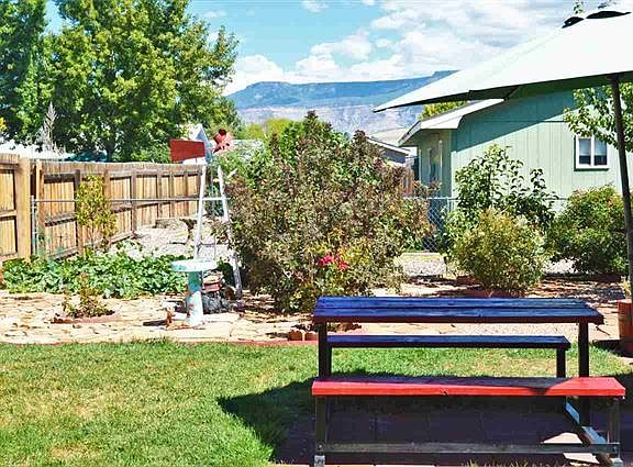 PARADISE MINI ORCHARD! Come & enjoy this wonderful home with an incredible yard, including peach, pear & cherry trees, grapes, melon, tomatoes & more. Gorgeous rose bushes & lilacs surrounded by hand laid ground stones. 2 HUGE covered patios & 1 open patio, with VIEWS of the Grand Mesa. See pictures! Immaculately cared for home in USDA eligible area. Warm feeling as you walk into a VAULTED ceiling open concept with LARGE living room, & good use of space. Enjoy the OVERSIZED master bedroom with its 2 closets & private full bathroom. In addition to the other 2 bedrooms, the garage is 1 1/2 times in length on 1 side, where an office has been set up! New roof, hot water heater, flooring, appliances, paint inside & out over the past 3 years! Great location near Rocky Mountain Elementary. (MLS school locater incorrect - actually Rocky Mountain Elem & Mt Garfield MS). Won't last long!