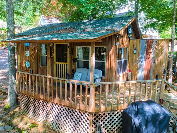 This is a fantastic cozy rustic lake home on Lake Wedowee with a FLAT lot with 212 feet of shoreline with year round water. This cute home offers 1 bedroom and 1 bathroom with a small sleeping loft. The outdoor amenities are unbelievable with multiple decks and a fire pit with plenty of space for a good game of corn hole. Great outdoor space for the kids to enjoy the lake life. You are just a few steps to the gazebo with a fish cleaning station, sun deck and a floating dock and jet ski port with year round water. You are located near Wedowee Marine and the Town of Wedowee with good local restaurants. Home is being sold furnished with plenty of lake toys for the kids. Home is currently being used as a vacation rental lake home. This is a great deal on the lake. You need to see this home for its value!