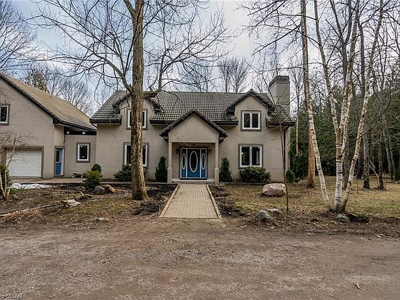 An exquisite European-style home nestled in a picture-postcard-like scene. As you enter the drive surrounded by mature forest, you'll fall in love with the tranquil and private setting. The entrance features cathedral ceilings with a grand staircase and open concept loft space. The main living room offers a wood-burning fireplace and links to the dining area with patio doors leading onto the deck. The chef's style kitchen has ample storage and a centre island for family and friends to gather around. The sunroom area off the kitchen is the perfect place to enjoy your morning coffee and allows the sunshine to radiate through the home. The conveniently located master suite on the main floor features an ensuite and privacy from other bedrooms. The unique upper level provides an open loft area, two additional guest rooms and a full bath. Perfect for an in-law suite or the kids! The lower level offers an extra guest room, office area and recreational room with luxury vinyl plank flooring. Freshly painted with newly installed hardwood flooring throughout! The double car garage features a bonus loft space that is just awaiting your vision for a studio or unlimited storage! Situated on over 2 acres of trails, mature trees complete with an above-ground pool, this is a one-of-a-kind estate! Situated on a dead-end road adjacent conservation area in a quiet neighbourhood. Yet conveniently located off of Highway 2 and only 5 minutes to Cobourg, the 401 and quaint hamlet of Grafton!
