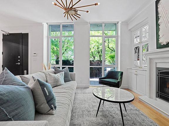 An exceptional luxury residence at Beach Crescent in the heart of Yaletown, ideally positioned directly across from George Wainborn Park and just steps to the seawall and False Creek. This rare THREE Bedroom, 2.5-bathroom TWO-Level home features a private, street-level entrance and two walk-out garden terraces offering serene views of the water, marina, and Granville Island off of the primary.. Designed for elevated living with three bedrooms up, the home showcases high-end materials, gourmet kitchen, and a refined primary suite. Enjoy resort-style amenities including concierge service, A/C, pool, hot tub, racquetball courts, guest suite, boardroom, lounge with pool table, and TWO parking stalls. With the park & seawall as your front yard, this is Vancouver waterfront living at its finest.